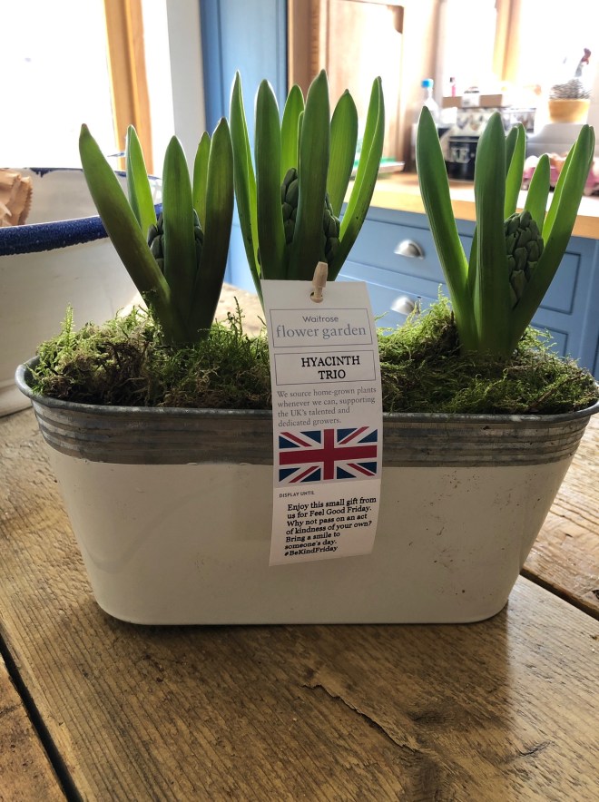 On Friday I popped to my local branch of Waitrose to pick up a click and collect parcel and on my way out, was gifted a lovely tub of hyacinths.